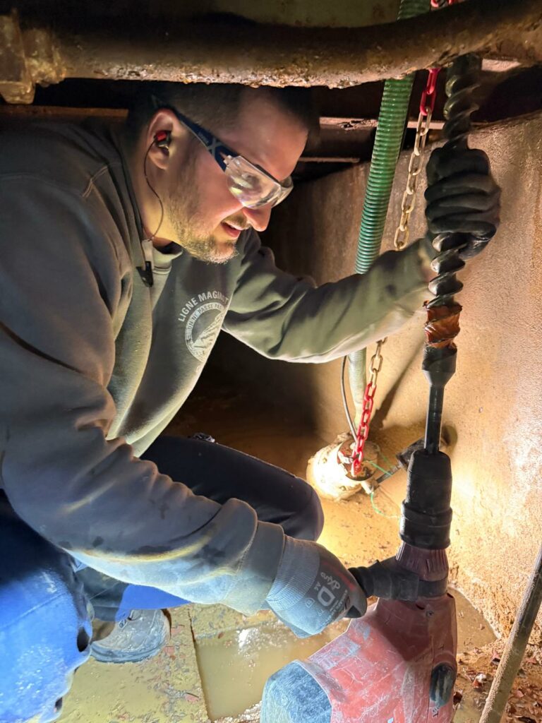 Cette semaine, Didier a débouché l’évacuation des eaux située au niveau des cuves de gasoil. Cela permet désormais à l’eau de s’écouler petit à petit en aval de la galerie, au lieu de stagner et de dégrader les installations du site. ✅
