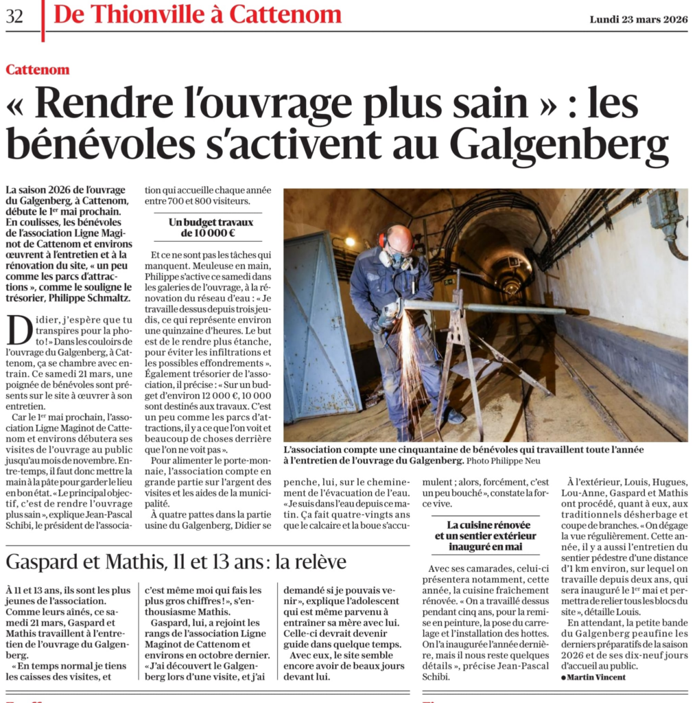 Samedi 21 mars, c’est le printemps et le soleil réchauffe le béton et les cuirassements de notre ouvrage ! Ni une ni deux, nos bénévoles ont passé la journée à l’extérieur pour s’occuper du sentier des blocs du Galgenberg. ![]()